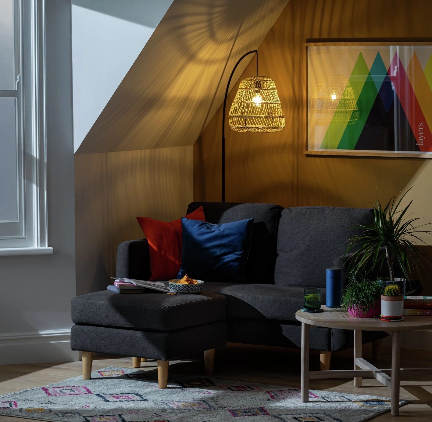 Habitat Remi Fabric 2 Seater Chaise Sofa In A Box-Light Grey